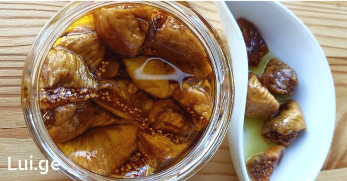 - აიღეთ 20 ცალი ლეღვის ჩირი, თითოეული გაჭერით შუაზე და მოათავსეთ ქილაში.