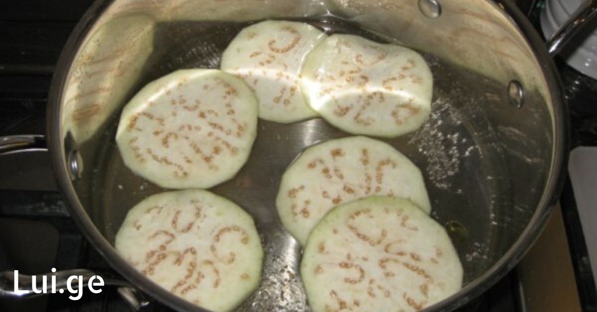 - ჯერ ბადრიჯანი გავრეცხოთ და შემდეგ დავჭრათ საშუალო ზომის ნაჭრებად.