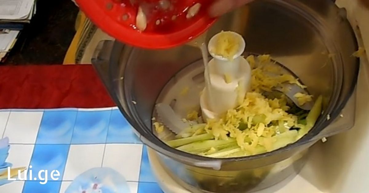 - მიღებული მასა ჩაასხით მინის ქილაში, დააფარეთ თავსახური და შეინახეთ მაცივარში.