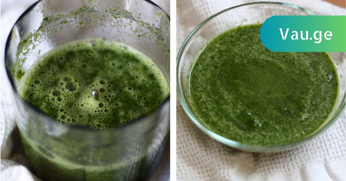1. ლიმონის წვენი, ოხრახუში და ნიახური დააბლენდერეთ.