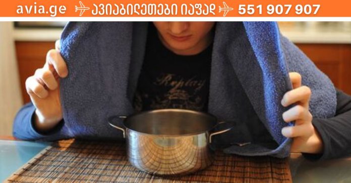 - შეისუნთქეთ ორთქლი პირით ან ცხვირით, დაავადების ტიპის მიხედვით.