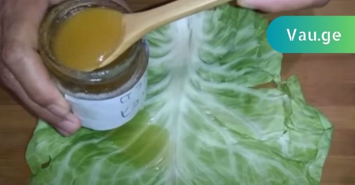 6. კომბოსტოს ფოთლებს წაუსვით თაფლი, დაიდეთ მტკივნეულ მუხლებზე და ზემოდან შარფით შემოახვიეთ. ამის გაკეთება საჭიროა საღამოს, ძილის წინ.