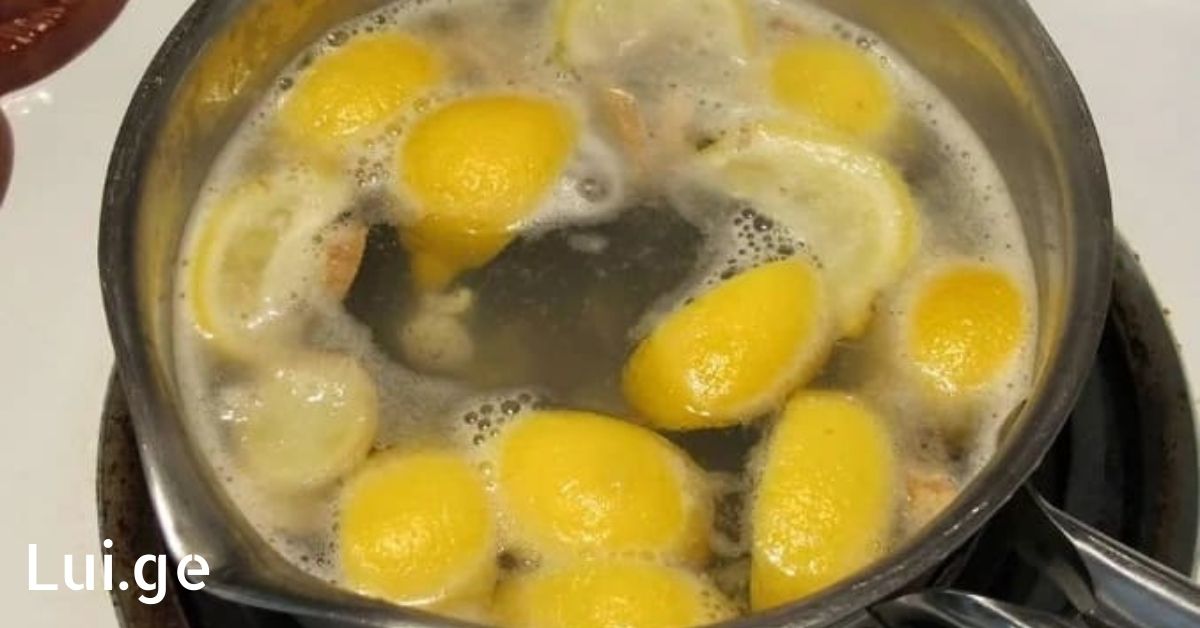 1. ლიმონები გავჭრათ შუაზე და დავამატოთ წყალი.