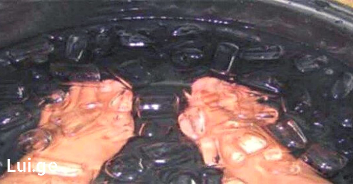 შეავსეთ ჭურჭელი ცივი წყლით და დაამატეთ ყინულები. მოათავსეთ ფეხები შიგნით 15 წამით, შემდეგ გაიმშრალეთ პირსახოცით და ჩაიცვით შალის წინდები.
