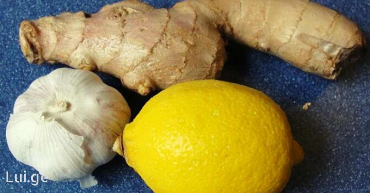 - დაჭერით ლიმონი და გააცალეთ კანი ჯანჯაფილს და ნიორს.