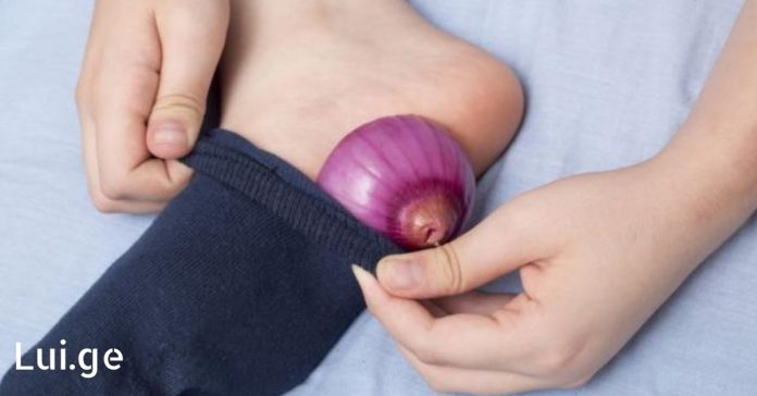თქვენ უბრალოდ უნდა მოათავსოთ რამდენიმე ცალი ხახვი ფეხის ძირებზე. ფეხებს აქვს მრავალი წერტილი, რომლებიც, ტრადიციული ჩინური მედიცინის თანახმად, დაკავშირებულია შინაგან ორგანოებთან.