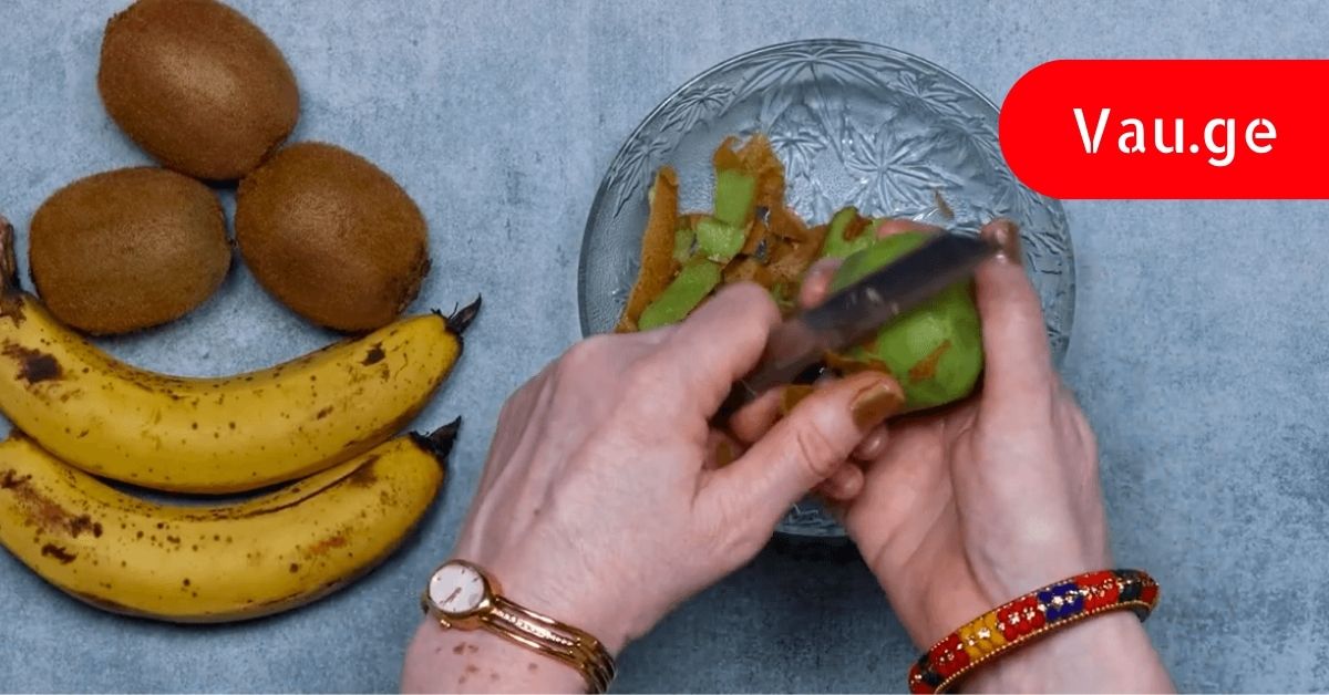 მოაშორეთ კანი ბანანს და კივს, გარეცხეთ ვაშლი და ყველა ინგრედიენტი დააბლენდერეთ ერთგვაროვანი მასის მიღებამდე.