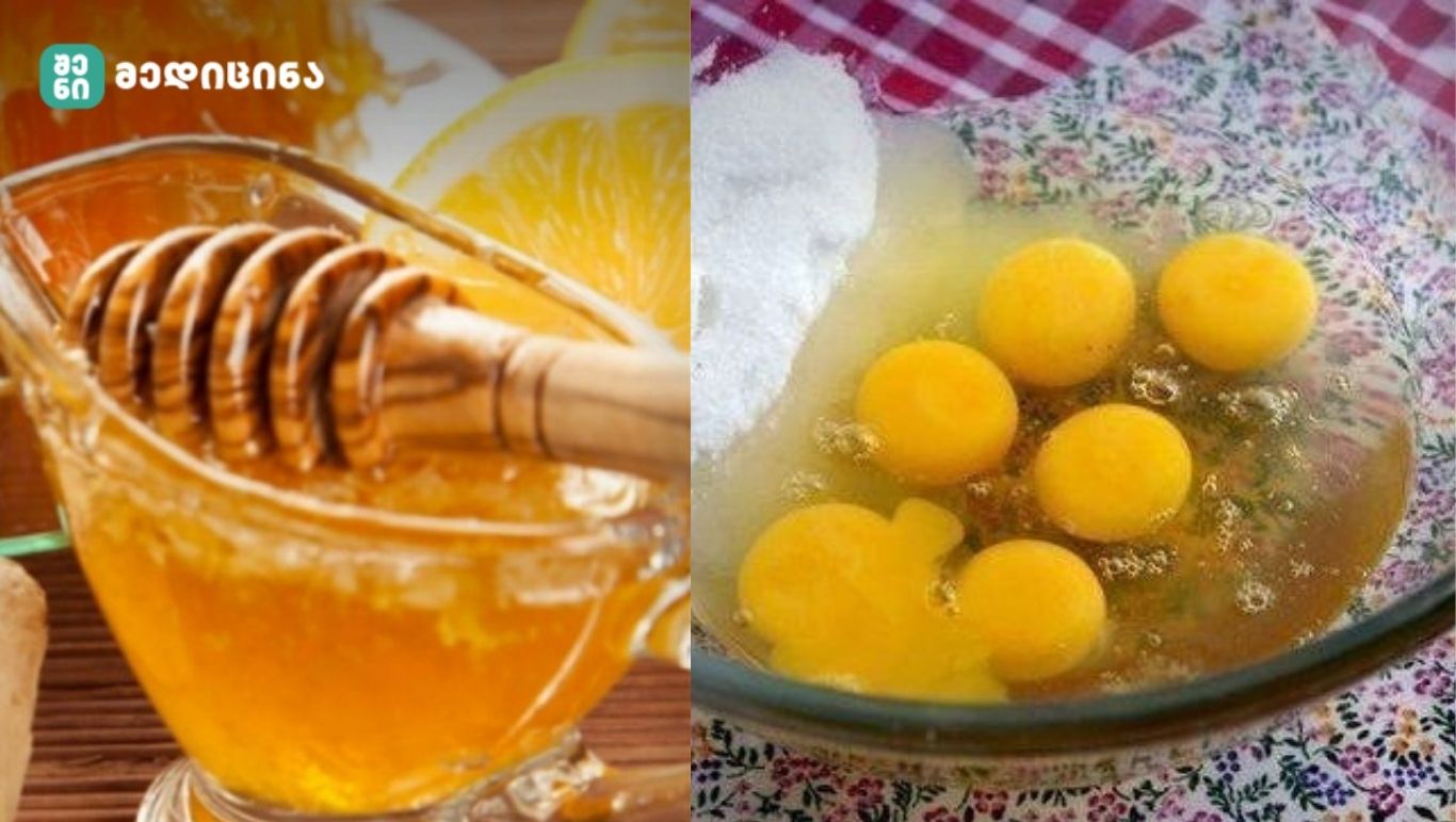 1 ჩაის კოვზ ნატურალურ თაფლს დაუმატეთ 1 სუფრის კოვზი ფქვილი და 1 უმი კვერცხის გული, აურიეთ კარგად ერთგვაროვანი მასის მიღებამდე. მზა საშუალება მოათავსეთ მინის ქილაში და შეინახეთ მაცივარში.