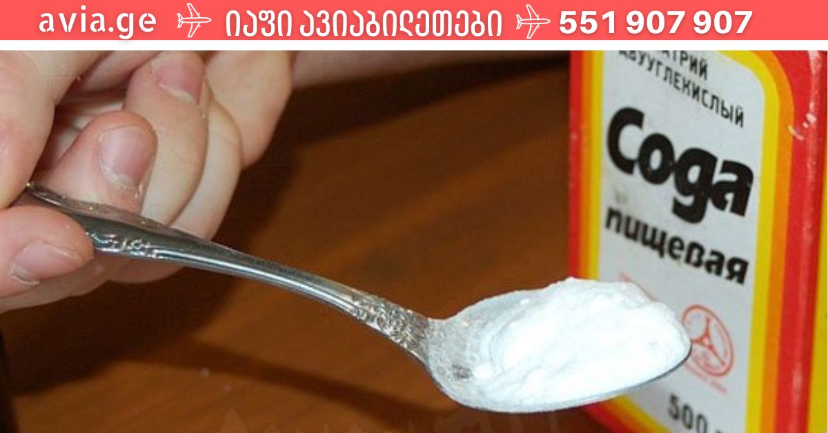 მიიღეთ ერთი ჩაის კოვზი საცხობი სოდა და ცოტა წყალი.