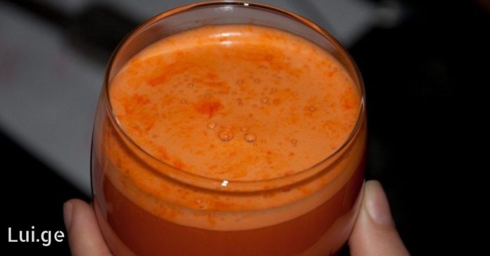 • დაამატეთ ყველა ინგრედიენტი ბლენდერში ან წვენსაწურში.