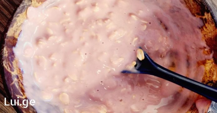2. დაუმატეთ 1 ს.კ. შვრიის ფანტელები (წვრილი) და 1 ს.კ. წითელი მშრალი ღვინო.