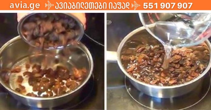 ერთი მუჭა ქიშმიში ჩაყარეთ ცივ წყალში და დატოვეთ ღამით. დილით გაღვიძების შემდეგ, დალიეთ ნაყენი და მიირთვით ქიშმიშიც მთელი დღის განმავლობაში.