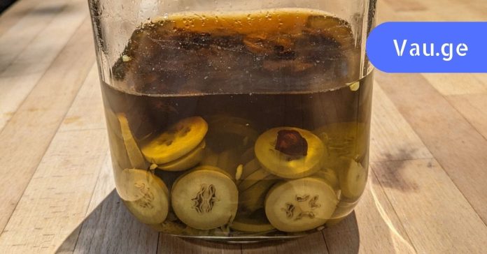 ვადის გასვლის შემდეგ გახსენით ქილა, გაწურეთ შიგთავსი საცერში, მიღებული მასა (ორი ლიტრი) უნდა შეინახოთ მაცივარში დახურული ქილით.