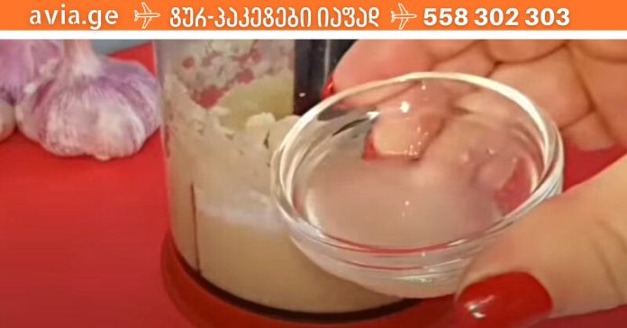 1. ნივრის კბილი კარგად დაჭყლიტეთ და ჩაასხით პიპეტში 4 სუფრის კოვზ წყალთან ერთად.